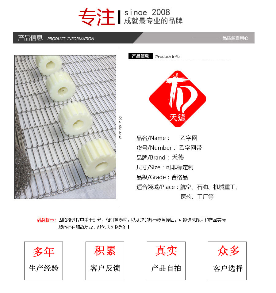 乙字型網(wǎng)帶用途:用于速凍食品,油炸食品,撒糖機(jī),巧克力涂層與各種食品輸送降溫線。